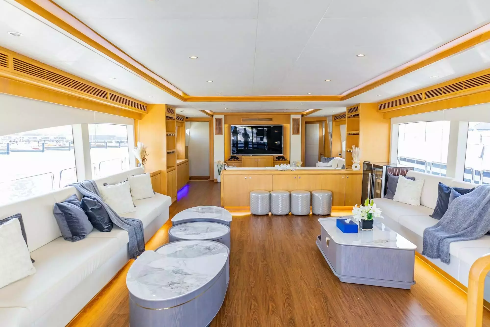 Kona is a 112 feet motor yacht built in 2022 by Walker. It can host up to 85 people and is perfect for day trips, half-day trips, and sunset cruises. For those with little time on their hands, a full-day boat tour onboard Kona is the perfect check off your bucket list of things to do and experiences in Dubai.